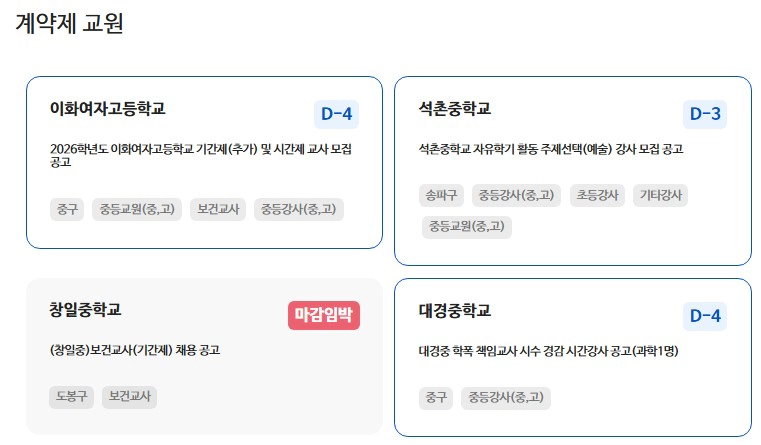 특히 학교 행정 업무, 돌봄, 급식, 방과 후, 기간제 교사, 교육공무직 등 교육 분야 일자리를 찾는 분들에게는 꼭 확인해야 할 사이트입니다.