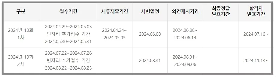 2024년 시험일정은 아래표와 같습니다.