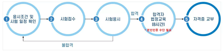 시험 응시와 합격 이후에 받아야하는 법정교육과 자격증은 아래에서 확인하실 수 있습니다.