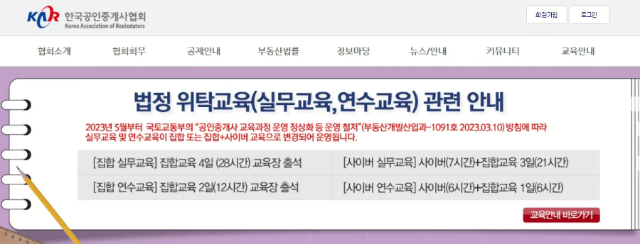공인중개사 자격증 취득 후에는 한국공인중개사 협회를 통해 지속적인 교육과 연수를 받고 정보를 교환하면서 업무를 수행할 수 있습니다. 자세한 내용은 아래 공인중개사 협회 홈페이지에서 확인하시면 됩니다.